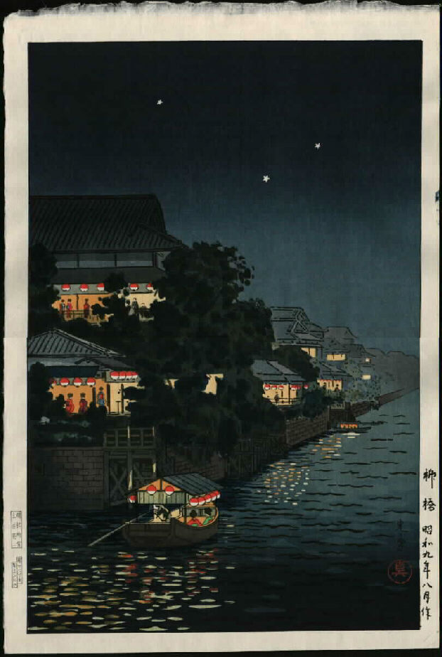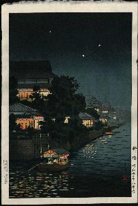 "Rising Moon at Morigasaki" in October 1931, with Fujikawa Tsurujiro as carver. This print was published by Hôjudô, and is not listed in Narazaki.
