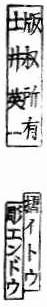 Read the left column second, top to bottom: Doi Teiichi. (Merritt & Yamada, page 316) Note the single-stroke character in the lower left corner, the character ichi, or number one. On prints which otherwise can be dated as prewar and early editions, these kind of ichi seals often appear. Although one would generally expect to see Doi Teiichi (the father's name) on prints with earlier dates, and Doi Eiichi (the son's name) on prints dated later, this is not universally true. Interviews have confirmed that the "correctness" of the current publisher's name was not necessarily the predominant factor when choosing a print's seals. Note: as mentioned above, Sadaichi is a technically valid but apparently incorrect interpretation of the name Teiichi. Here are some examples of different Doi publisher seals: