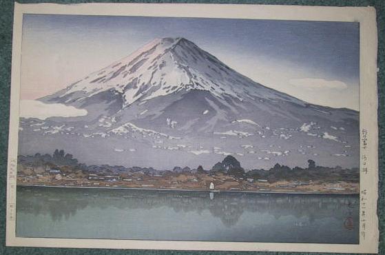 This image was provided to us courtesy of Mr. Sakai of Sakai-Kokudo Gallery, Tokyo. It appears on a Hasui print (first color version) Edogawa no Yuki, "Snow at Edo River".