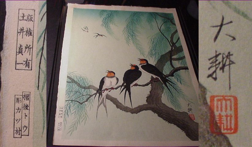 The printer seal (close-up, middle) reads Ono in Kanji and Hi-ko in Katakana. See the listing of Doi printers.